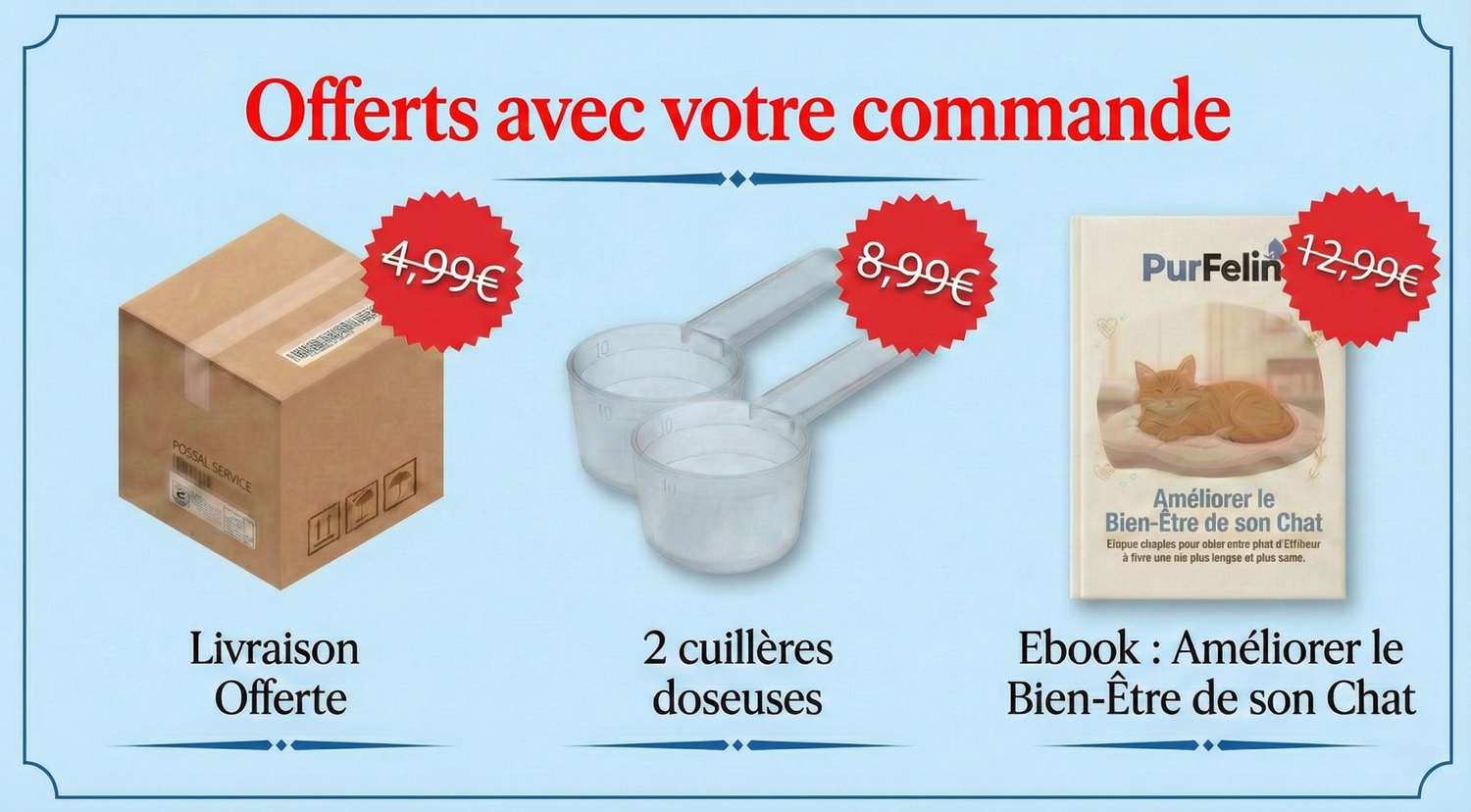 Si vous ne constatez pas une amélioration de l’énergie et du bien-être de votre chat, nous vous remboursons intégralement.